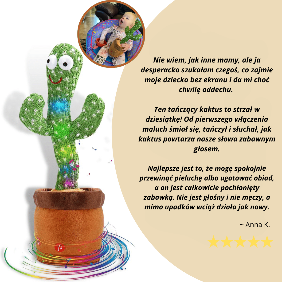 Pożegnaj się z zabawkami, które po 10 minutach lądują w kącie. Kaktusik to wesoły towarzysz, który rozśmiesza, angażuje i bawi dzieci bez ekranu! Powtarza słowa, tańczy do muzyki, świeci i za każdym razem tworzy małą imprezę. Ty masz chwilę spokoju, a dziecko świetną zabawę.