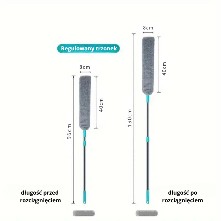 Dzięki wytrzymałemu materiałowi z mikrofibry oraz solidnemu trzonkowi z cienką głowicą, ta szczotka usuwa kurz i brud nawet z najtrudniejszych zakamarków, gdzie zwykła miotła nie sięga. Elastycznie dopasowuje się do przestrzeni.